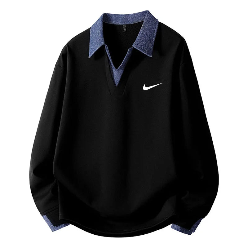 Made from a high-quality cotton blend, this sweatshirt provides warmth without bulk. The smooth inner texture feels gentle on the skin, while the lightweight fabric ensures all-day comfort. The V-neckline paired with a contrast shirt-style collar adds a touch of sophistication to your everyday wardrobe.